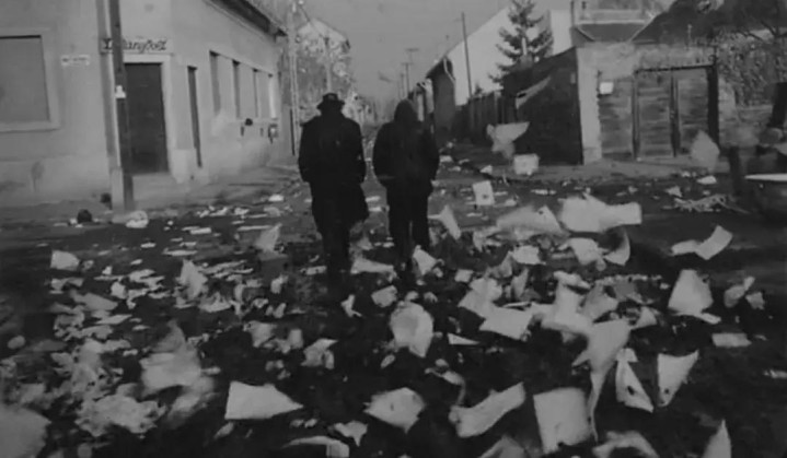 虽然我只能以最笼统的方式概述它的情节,但令人震惊的是,这段影像很大程度上重现了塔尔前三部长片中的元素,同时也预示了后三部长片中那种漫长的、精心编排的摄影机运动,以及哲思性的「恶魔学」。甚至连《局外人》的男主角安德拉斯(安德拉斯·萨博饰)也带着小提琴出现在了银幕上,他提供了部分的伴奏。